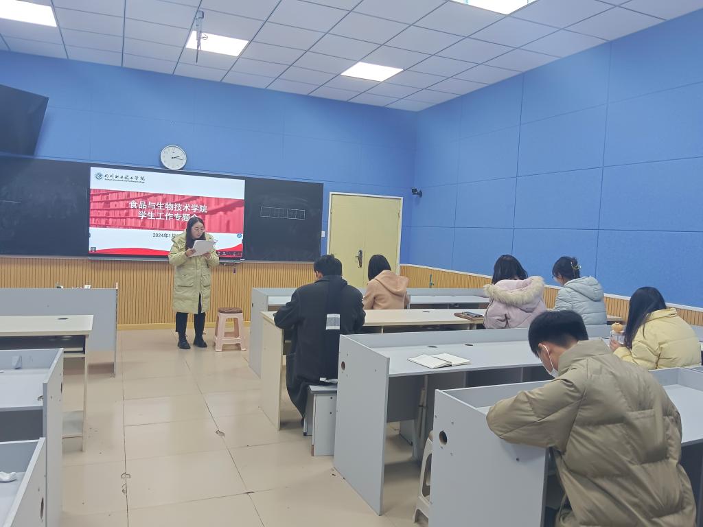 为进一步落实立德树人教育方针,推动学生工作持续发展,1月4日,我院召开学生工作年度总结专题会议。会议由学院党支部书记尹黎主持,辅导员杨晓仪、潘富春,班主任李唱、李琳以及学院部分教师、学生代表参加本次专题会。