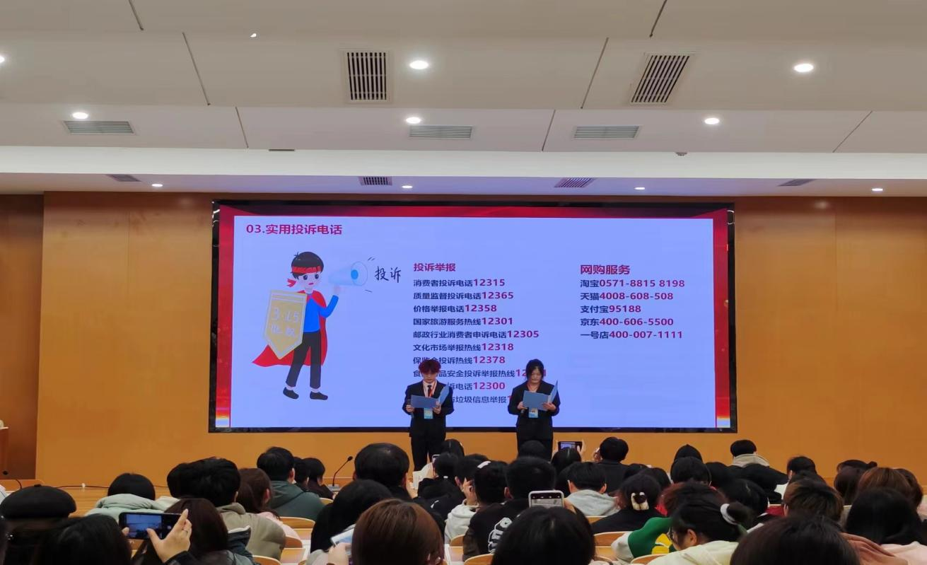 活动开始,主持人解读了活动的意义,普及了维权的相关知识,相关法律,各个投诉维权电话,让同学们学会保护自己的正当权利,正确维权。