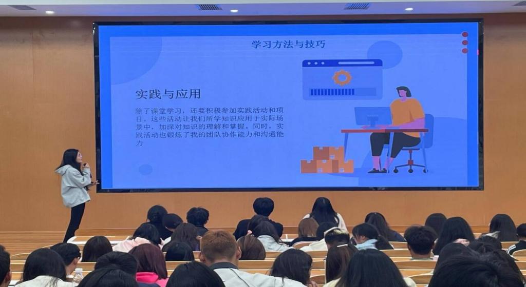 接着大二年级励志奖学金获得者黄霞向大家分享了一些自己对未来的展望和学习的方法技巧,对同学们来说这是一次宝贵经验的学习。鼓励学弟学妹们要有目的、有计划开展学习,同时也要注意劳逸结合。