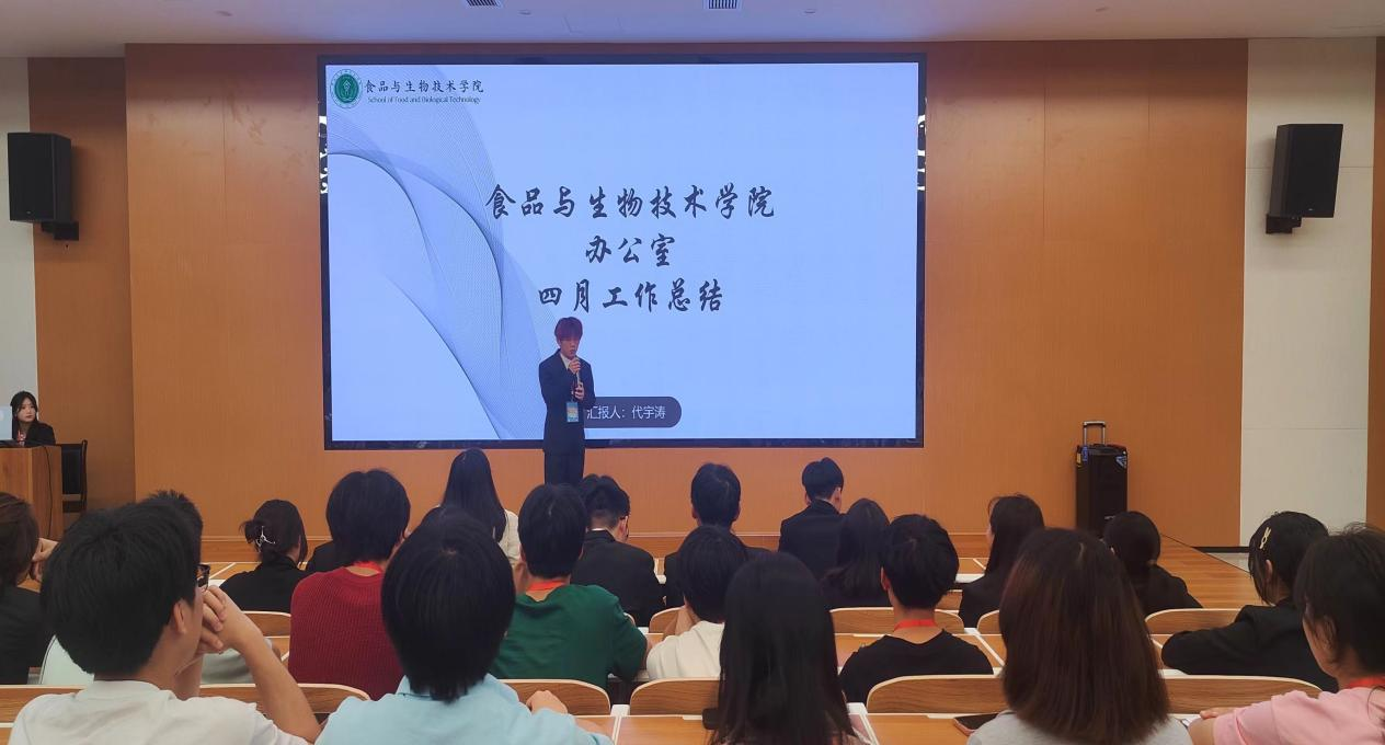 5月10日,食品与生物技术学院团总支学生会在B5-101成功开展了学生会工作总结的大例会,出席此次例会的有团总支学生会指导老师李唱、潘富春、杨晓仪,团总支学生会主席团成员、各部负责人以及各学生会干事。