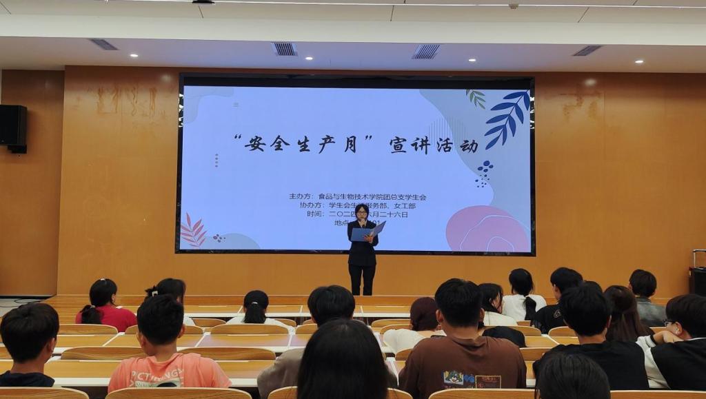 “安全无小事,生命重如山”。为了进一步增强同学们的用火用电安全意识,6月26日,由食品与生物技术学院团总支学生会举办的“安全生产月”宣讲活动在B5-101成功举办。参加此次活动的有团总支学生会主席团及100名同学。