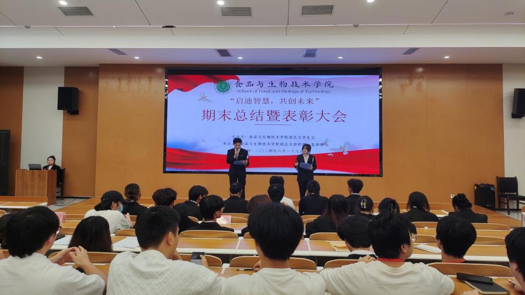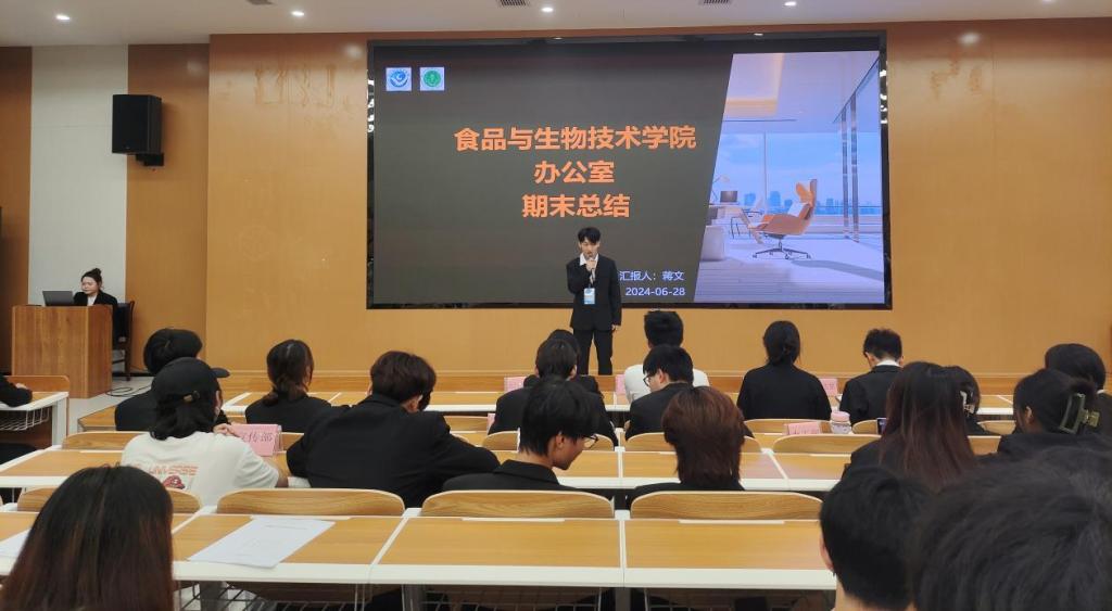 6月28日,由食品与生物技术学院团总支学生会举行的团总支学生会期末总结暨表彰大会在b5-101教室成功举办。出席本次会议的有指导老师李唱、杨晓仪,团总支学生会主席团和各部门负责人及成员。