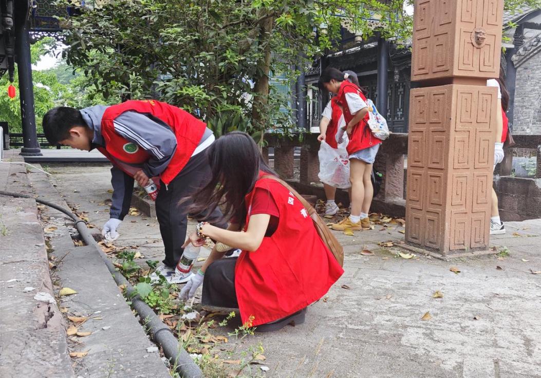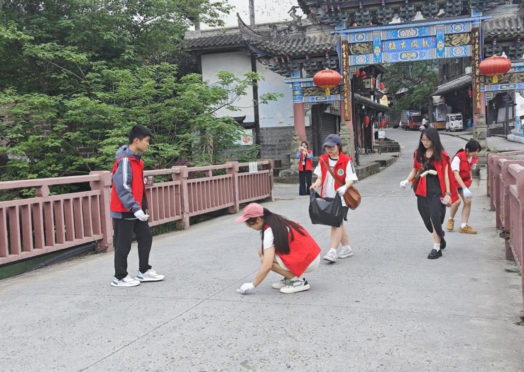 五月的龙凤古镇,鸟语花香,微风轻拂着树叶,志愿者俯身如蝶,穿梭于街巷之间,白色垃圾尽收入袋。他们配合默契、动作娴熟,不过一会儿古镇的街巷就变得一尘不染。