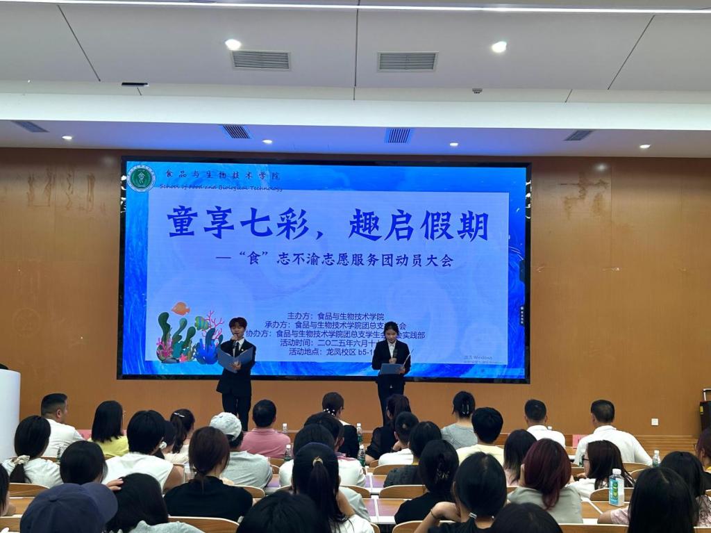 为凝聚志愿力量,为假期儿童带来丰富多元的关怀与陪伴。6月17日,船山区政府与食品与生物技术学院在B5-101教室举行“童享七彩,趣启假期”假期志愿者动员大会。