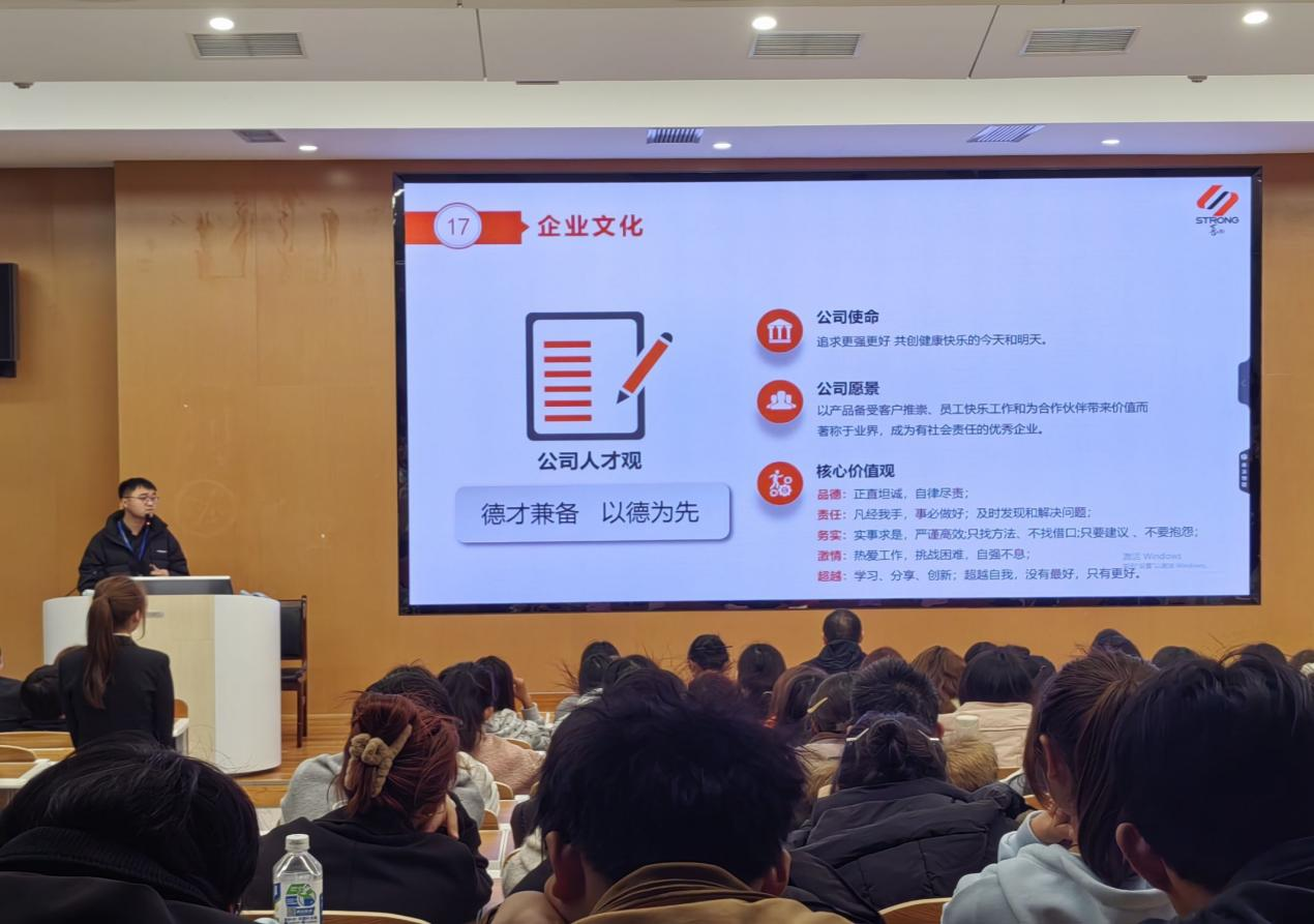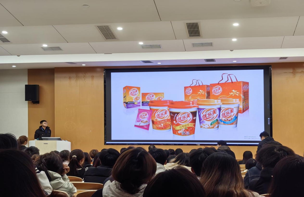 喜之郎食品有限公司负责人蒋峰详细介绍了公司的基本情况、企业文化、人才培养发展策略以及工资组成等内容,让同学们对喜之郎公司的发展历程、产品种类以及未来的发展方向有了更深入的了解。