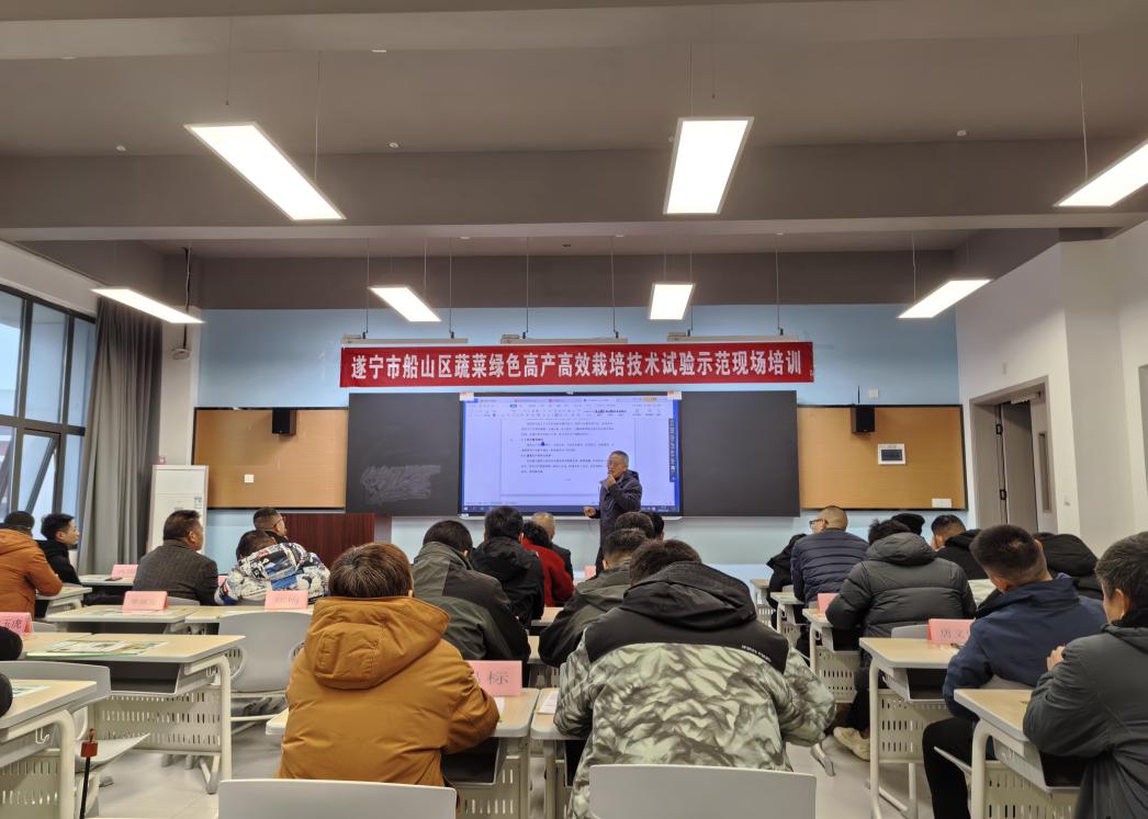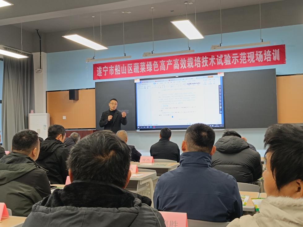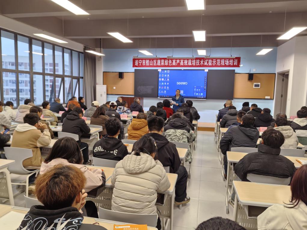 12月3日,四川省“百县千乡万户”科学安全用药培训(船山区老池镇马铃薯专场)暨遂宁市船山区蔬菜绿色高产高效栽培技术试验示范现场培训在四川职业技术学院龙凤产教园区B4-401顺利举行。本次活动由船山区农业农村局主办,四川职业技术学院食品与生物技术学院承办,旨在推广科学安全用药理念,普及绿色高产高效农业技术,提升全区蔬菜产业现代化发展水平。