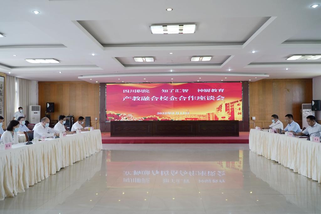 5月13日,我校与成都市神厨教育科技有限公司、成都知了汇智科技有限公司举行座谈会并分别签署校企合作产教融合合作协议。副校长胥长寿、李勇、王创,成都市神厨教育科技有限公司董事长王加强,成都知了汇智科技有限公司总经理何智慧及其相关负责人出席签约仪式。