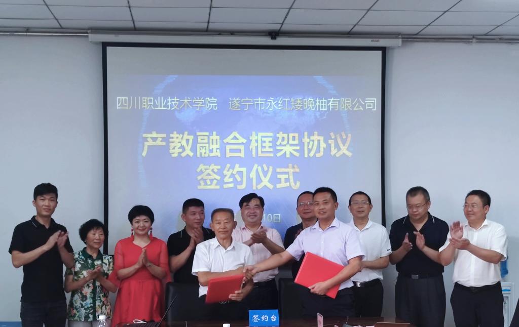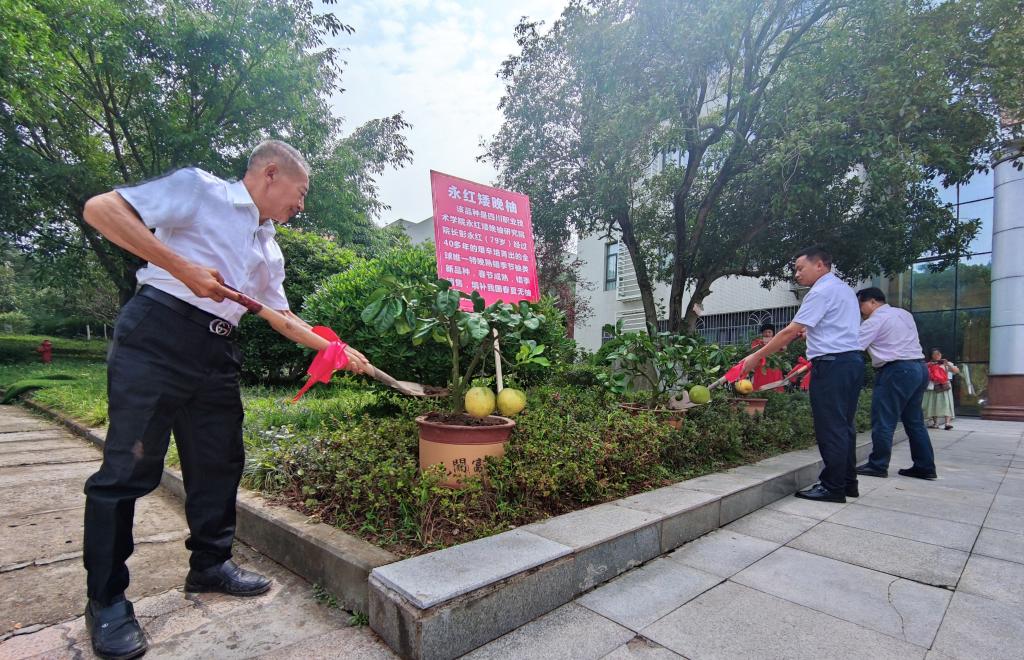 6月10日上午,我校举行了“四川职业技术学院-遂宁市永红矮晚柚有限公司”产教融合框架协议签约仪式及“四川职业技术学院矮晚柚研究院”成立的揭牌仪式。仪式上我校党委委员、副校长胥长寿与遂宁市永红矮晚柚有限公司彭永红签订了协议,彭永红表示,他被我校领导及各部门、二级学院领导转作风、提效率、抓落实的精神所感动,愿意真诚的与我校合作,双方互利互惠,一起把产教融合项目办好,培养有文化有技能的高质量职业人才。随后,胥长寿、李勇、彭永红一齐种下了象征合作的三棵矮晚柚盆栽。