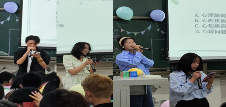 本次活动我们通过答题和游戏这两个环节展开心理教育活动,使学生在身心方面得到健康发展,更进一步促进学生间相互信任,增强凝集力。活动中采用了提问抽奖的方式进行,不断活跃气氛。活动途中,同学们还参与了击鼓传花的小游戏,随着音乐的响起和结束,同学们争着上台表演,无疑又将本次活动推向高潮,大大提升了同学们的积极性,并从中获得了快乐。