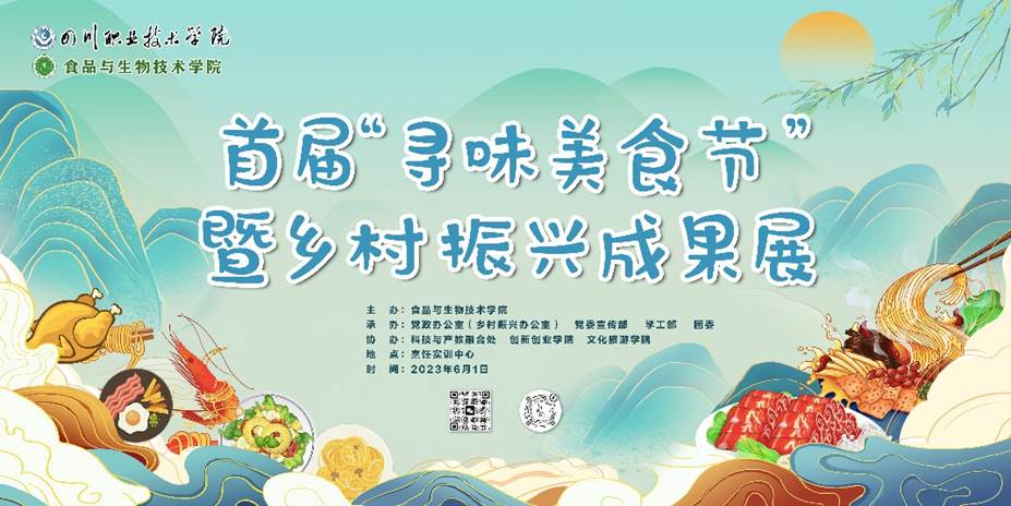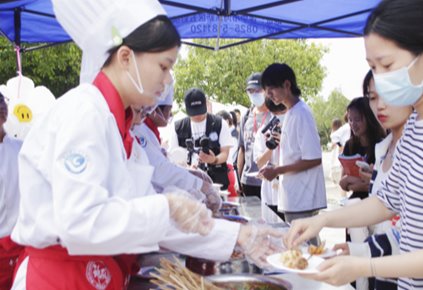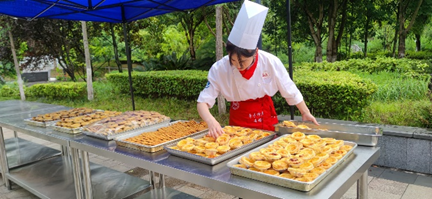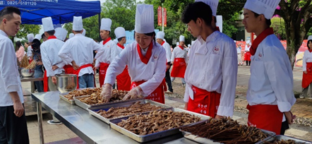 为展示学校后山种养殖产业发展成果,展现食品与生物技术学院烹饪工艺与营养专业同学们学习成效,2023年6月1日,食品与生物技术学院全体师生举办了首届美食文化节暨乡村振兴成果展。