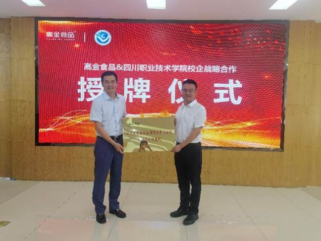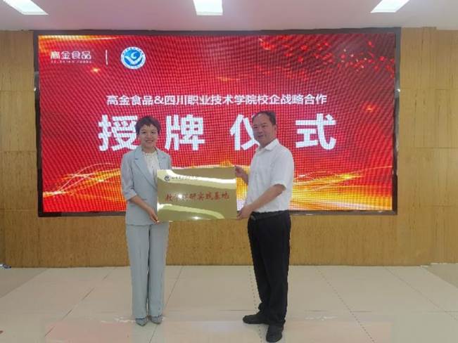 校党委委员、副校长杨丁与四川高金实业集团股份有限公司杨莉签订了协议。四川职业技术学院党委书记张生授牌“教学科研实践基地”,四川高金实业集团股份有限公司杨莉接牌;四川高金实业集团股份有限公司董事长金翔宇授牌“科研与人才基地”,四川职业技术学院党委委员、副校长杨丁接牌。