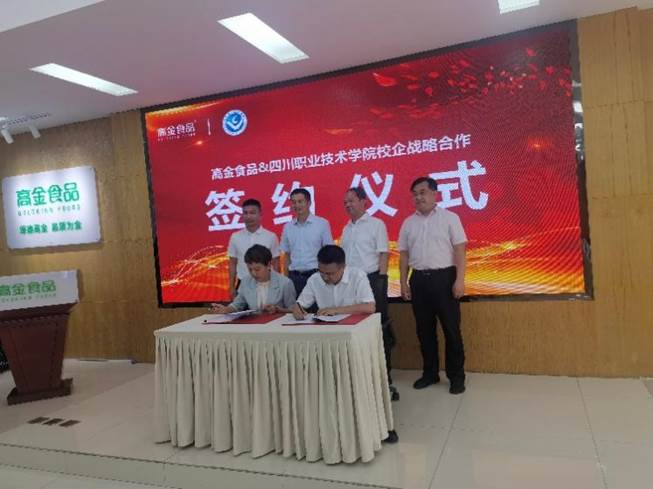 6月6日下午,我校在四川高金实业集团股份有限公司与该企业”签订了校企战略合作框架协议。签约仪式由企业方主持,企业董事长金翔宇、轮值CEO杨莉、副总裁刘舒全、综合保障服务中心部长黄敏、人力资源部副部长徐洁参加;我校党委书记张生,党委委员、副校长杨丁,党委委员、副校长李勇,科技与产教融合处处长伍志平,外国语学院党总支书记翟莲,食品与生物技术学院副院长江华明出席活动。