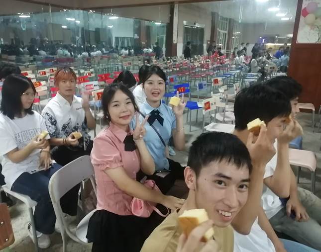 最后由学生会成员分发22级同学们做的戚风蛋糕,这也是学姐学长们对23级学弟学妹的祝福与期望。在分发蛋糕的期间PPT播放着学生会与工作室招新VCR,也希望23级的同学们能够积极报名锻炼自己。最后典礼圆满结束,同学们依序退场。前路漫漫亦灿灿,希望同学们能够珍惜大学时光,锻炼自己的能力,丰富自己的知识与技能。