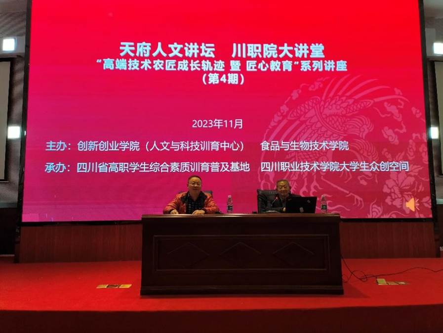为贯彻党的二十大精神,落实立德树人根本任务,大力弘扬劳模精神、劳动精神、工匠精神,帮助学生树立职业理想,我校于2023年11月30日在校本部举行大国工匠进校园活动。我校特邀遂宁市名优果树研究所所长、遂宁市永红矮晚柚有限公司总经理、四川职业技术学院永红矮晚柚研究院院长彭永红为食品与生物技术学院师生开展主题宣讲。