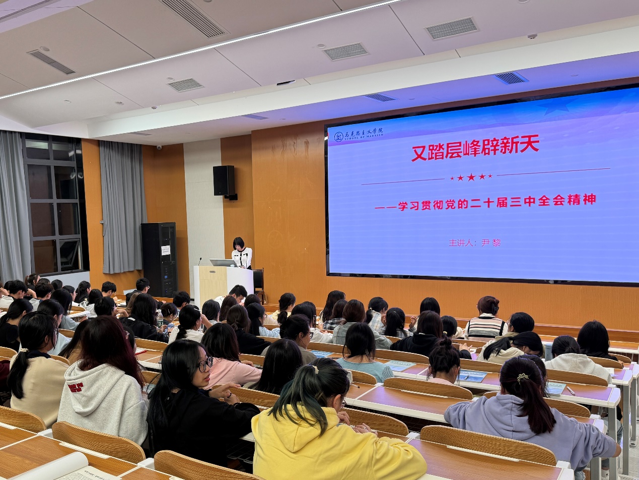 课上,尹黎紧紧围绕深入学习贯彻习近平总书记在党的二十届三中全会上的重要讲话和全会《决定》,从深刻认识党的二十届三中全会的主题和意义,深刻认识进一步全面深化改革的指导思想、总目标和重点原则,全面理解《决定》提出的进一步深化改革重大举措和在中国式现代化进程中注入青春能量等四个方面内容,对党的二十届三中全会精神进行了系统阐述和全面讲解。