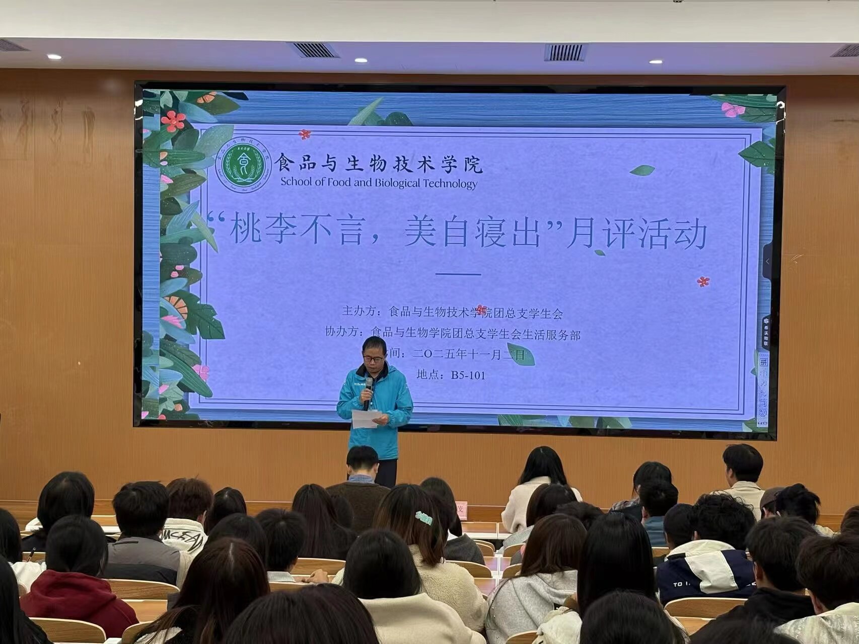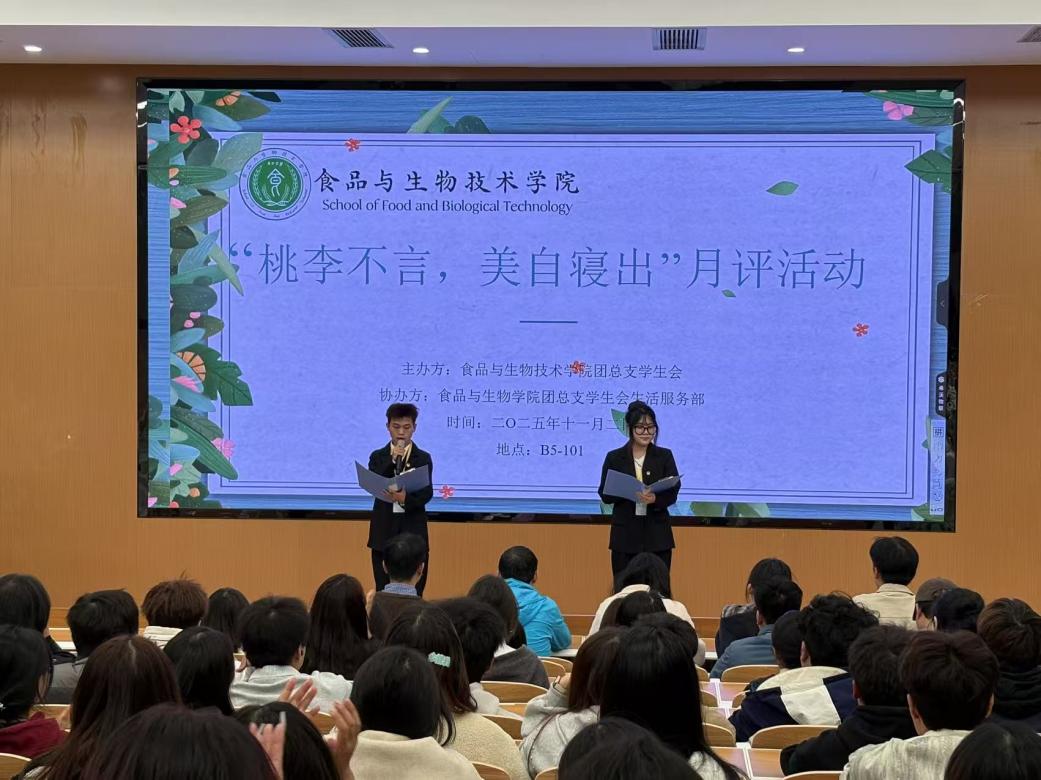 为营造整洁舒适的寝室氛围,深化学院寝室文化建设。11月2日,由食品与生物技术学院团总支学生会生活部举办的“桃李不言,美自寝出”寝室月评活动在B5-101开展。出席此次活动的有学院副院长张孝茂,学生工作老师潘富春、林雍,以及各寝室代表。