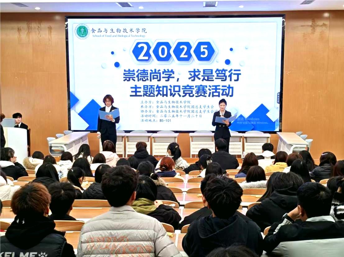 为深化学风建设、以赛促学锤炼学生综合能力。11月20日,食品与生物技术学院在B5-101举办“崇德尚学,求是笃行”主题知识竞赛。学院院长唐利军以及学生会各部门成员参会。