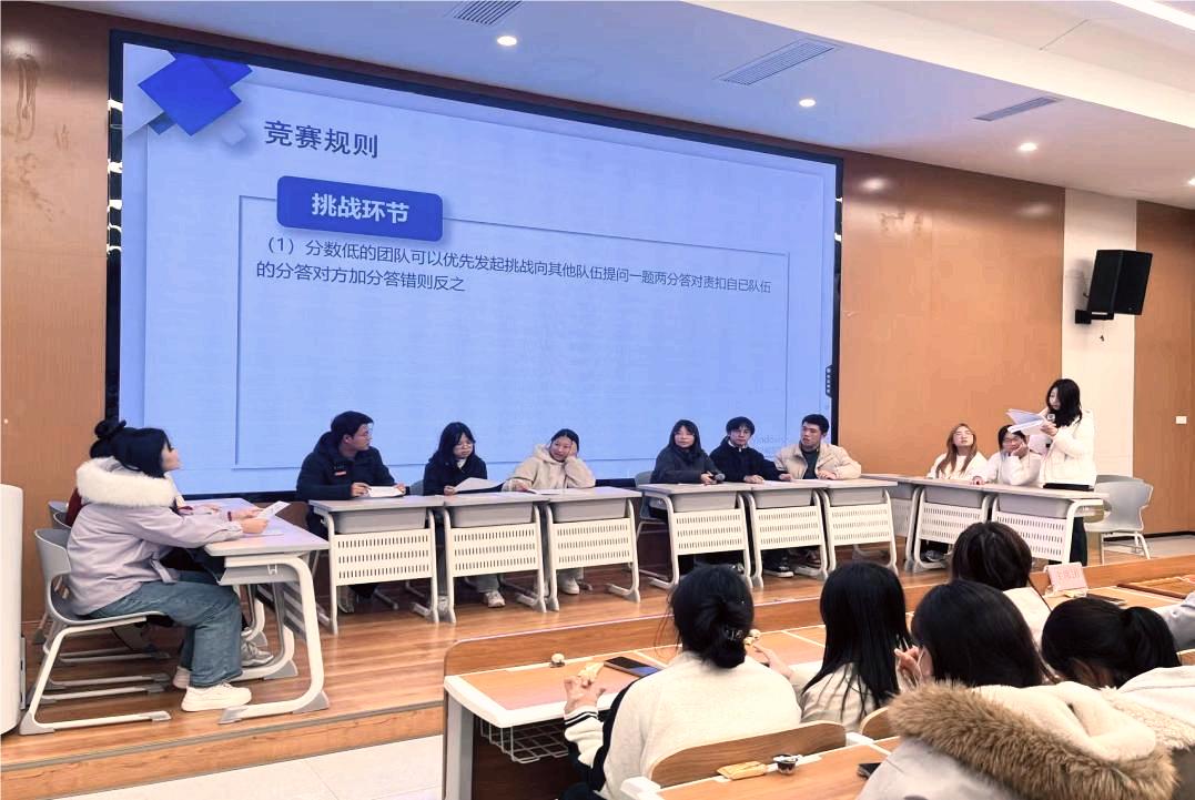 竞赛现场气氛热烈,答题、抢答、挑战等环节环环相扣;选手们沉稳应答必答题,敏捷争抢抢答题,在挑战环节中展现出协作默契与知识储备,生动诠释了“崇德尚学”的活动精神。