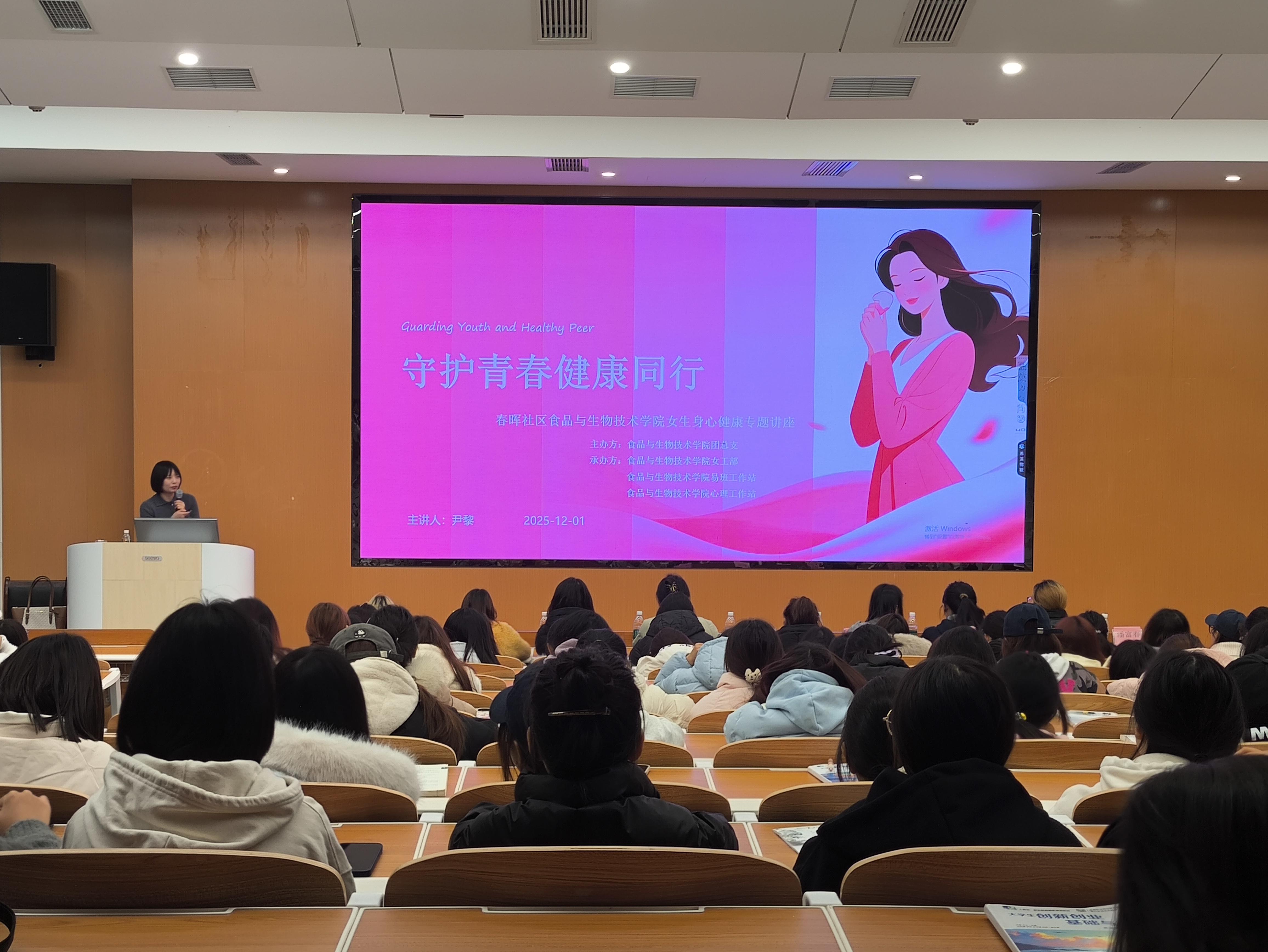 为切实关注女生心理健康成长,帮助她们缓解压力、树立积极心态,正确应对成长中的困惑与挑战。12月1日,食品与生物技术学院在B5-101举办“守护青春,健康同行”女生心理健康专题讲座。本次讲座由学院党总支书记尹黎主讲,全体女生参加。