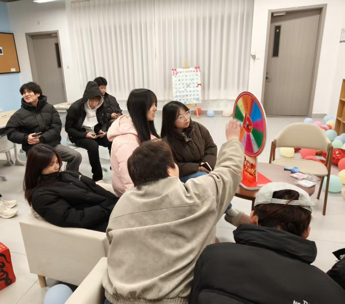 活动围绕“辞旧、迎新、开运、纳福”四个环节展开。其中,辞旧环节设负面情绪垃圾桶,象征与过往负面情绪彻底告别,轻装上阵迎接新岁;迎新环节通过新年愿望留言板,让大家写下对未来的期盼与目标;开运环节则设置了福运甄选大转盘,以轻松有趣的方式增强仪式感,营造温暖治愈的氛围;纳福环节为新岁福礼传递站,同学们根据转盘结果领取相应礼物,收获一份新年惊喜。